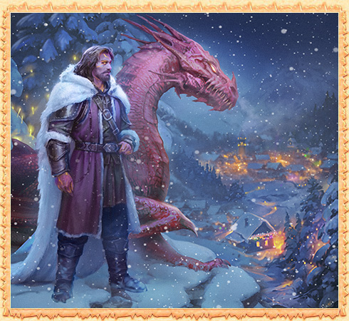 The valiant warrior vigilantly looks over the plain below - the villages are preparing for festivities in the shimmering lights. Nothing will overshadow the joy of the Magmars, the holiday is well protected as even the symbol of the coming year, the Great Dragon, participates in the New Year's Watch!